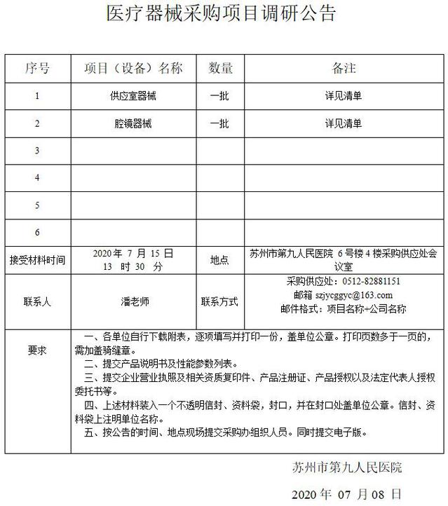 医疗器械采购项目调研公告
