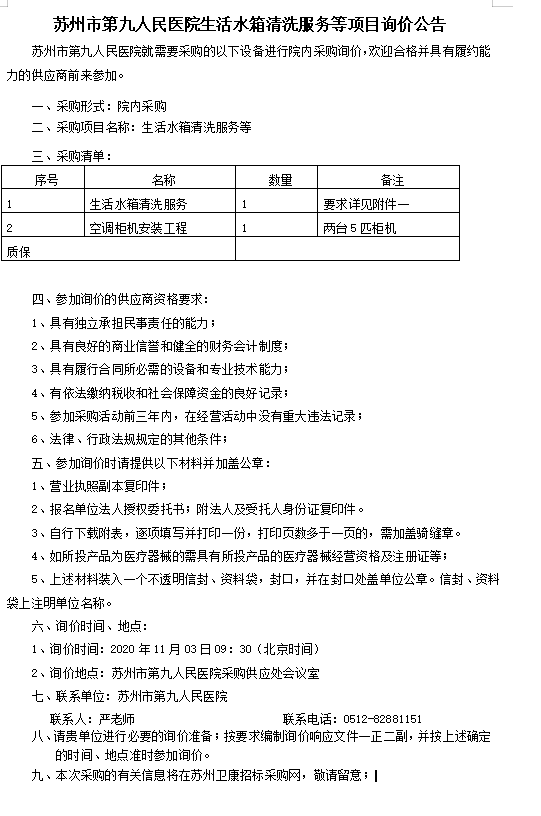 金沙娱乐城app 生活水箱清洗服务等项目询价公告