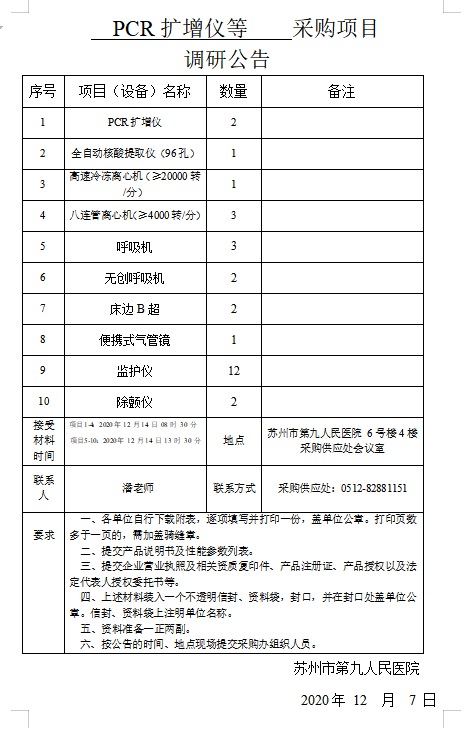 PCR扩增仪等 采购项目调研公告