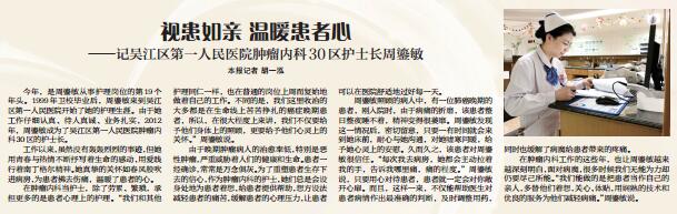 ——记吴江区第一人民医院肿瘤内科30区护士长周鎏敏