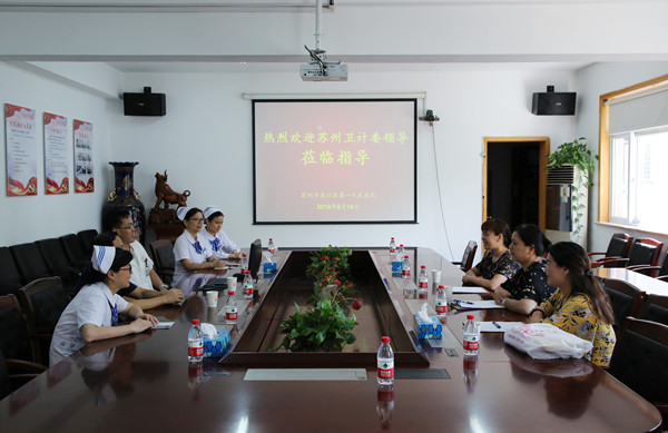 8月14日上午,苏州市卫生计生委专家组来金沙娱乐城app调研儿科护理工作。此次调研的三位专家分别是苏州儿童医院科护士长张旦红、盛晓郁护士长、市立医院王建清护士长。吴江区卫计委医政处副科长陆骏灏、金沙娱乐城app护理部主任肖佩华、护理部副主任刘永琴、内科科护士长徐敏玲等陪同调研。