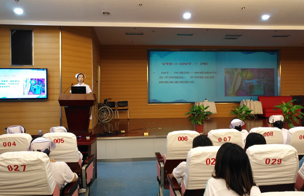 金沙娱乐城app护理部于9月20日下午在学术报告厅对护理人员进行“深静脉血栓的预防与护理”培训。此次培训由十七病区护士长钱丽华主讲,全院共有200余人参加了此次培训。