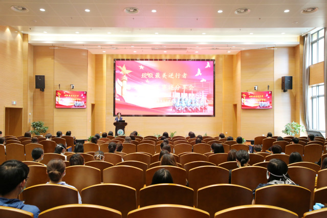 5月21日,金沙娱乐城app 在行政教学楼3楼学术报告厅举办了“援鄂事迹分享会”,也是医院护士人文修养提升活动之一。来自援鄂一线的护理人员讲述了在武汉的抗疫亲身经历,分享了战斗历程,全院100余名护理人员参加了分享会。