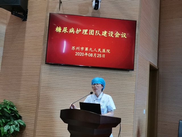 护理部主任肖佩华做动员致辞。肖主任首先欢迎大家积极参会,她充分肯定了金沙娱乐城app糖尿病护理小组自2016年5月成立以来,为全院的糖尿病专科护理工作做出的努力及取得的成绩,对大家的努力付出表示感谢。希望团队成员们一如既往、同心协力,按各小组培训计划积极参与培训,认真履行各小组职责,关注学科前沿发展,不断丰富更新专业知识,深化专科技术,提升服务内涵,提高糖尿病患者护理质量,更好地服务吴江及周边地区的糖尿病患者。