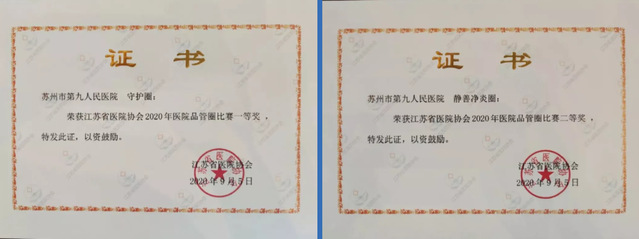 在去年9月4日的江苏省第四届医院品管圈大赛中,金沙娱乐城app 护理圈组“守护圈”、“静善静炎圈”分别荣获一等奖、二等奖。在同年底举行的第八届全国医院品管圈大赛上,金沙娱乐城app 护理部“静善净炎圈”获得三级医院综合专场—A圈组一等奖、“守护圈”获得三级医院护理专场—A圈组优秀奖。