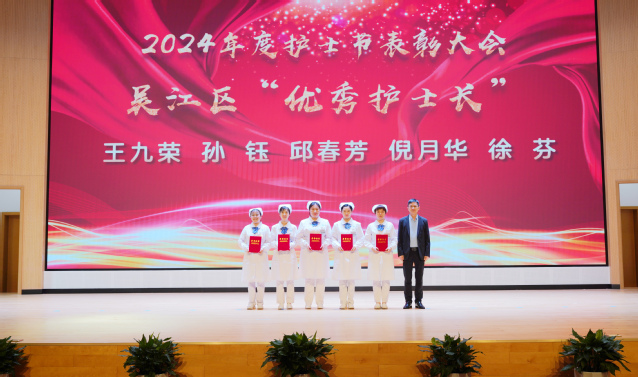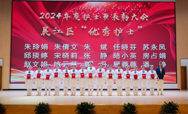 获表彰的“最美芳华30年”护士,苏州市优秀护理管理者,吴江区优秀护士长、吴江区优秀护士,医院“十佳护士”、团队之星奖、管理先锋奖、新秀蓓蕾奖等上台领奖。