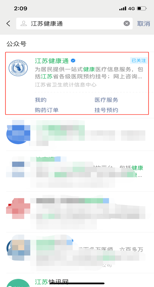 1.关注金沙娱乐城app 微信公众号或江苏健康通公众号。