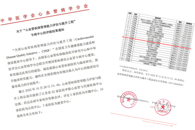 日前全国心血管疾病管理能力评估与提升工程(CDQI )官方网站公布了江苏省22家医院