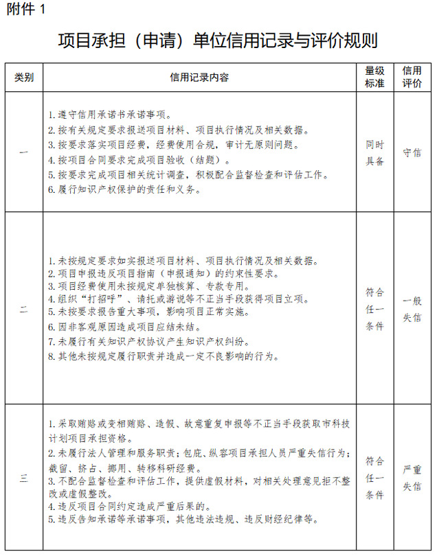 (三)实施管理。对项目承担单位和项目承担人员在项目组织实施、经费落实和使用、信息报送等主体责任落实行为中的信用情况,以及项目主管部门、专业服务机构在项目实施管理和监督工作中的信用情况进行记录和评价。