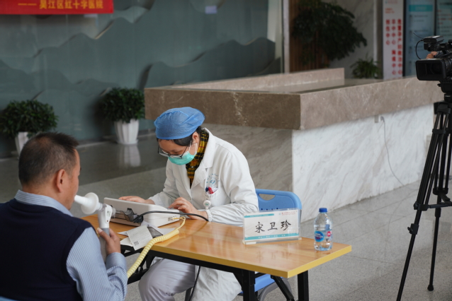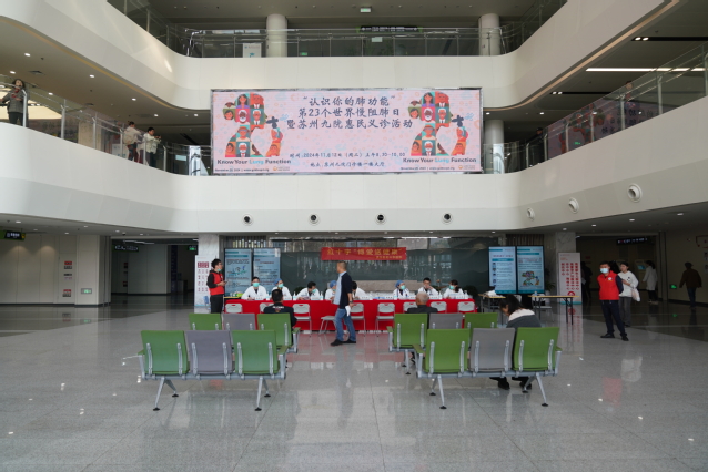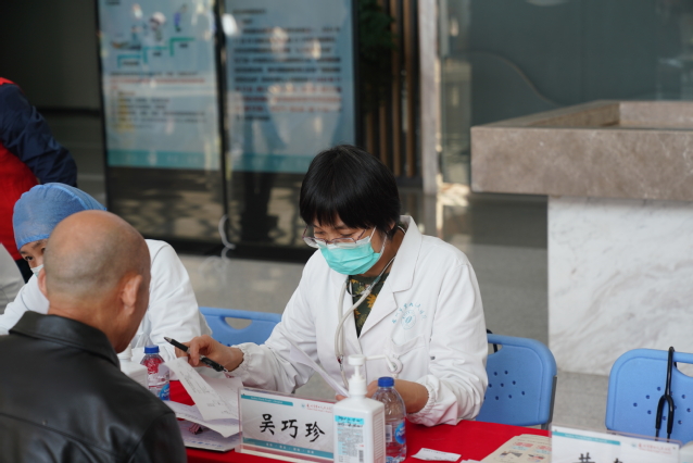 医院门诊一楼大厅,呼吸与危重症医学科学科带头人吴巧珍主任医师,金沙娱乐城app 呼吸与危重症医学科首席专家级特聘主任黄建强主任(中山大学附属第一医院呼吸与危重症医学科主任医师、诊断学教研室副主任),科主任胡晓蕴主任医师,科副主任董凌云及张剑锋主任医师,科室宋卫珍、郑江南副主任医师及药学部宋秋萍副主任药师、庄伏志主管药师参与义诊活动,为群众提供慢阻肺相关知识咨询,并指导慢阻肺患者正确吸入药物的使用方法,同时安排了免费肺功能、呼出气一氧化氮检查。