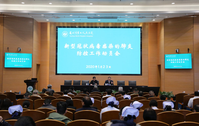 1月20日,医院成立新型冠状病毒感染的肺炎防控领导小组,1月23日,召开防控工作动员会,并成立八大工作组,明确目标任务和工作责任,扎实开展疫情防控工作。