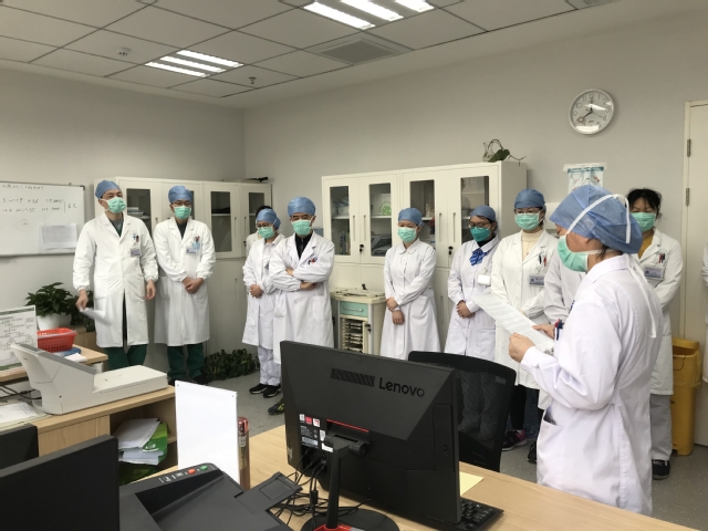 医疗救治组落实各项防控措施。院内专家组制定新冠肺炎院内会诊流程、疑似新冠肺炎诊治流程,完善发热门诊、隔离病区工作流程,根据诊疗方案、防控方案等制定培训内容,分组、分批下科室培训,人人参与培训,确保做到医务人员防控“全知晓”。