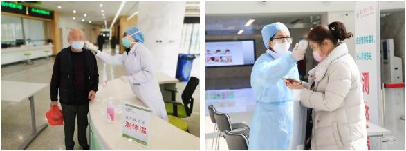 为坚守好防控第一道岗。全院落实预检分诊工作,门急诊及各栋楼设置预检分诊点,医护、医技、保卫处安排固定人员24小时值班。门诊在保障群众正常就医需求的同时尽量减少人员聚集,集中定点对出入人员进行体温测量和流行病学史询问。