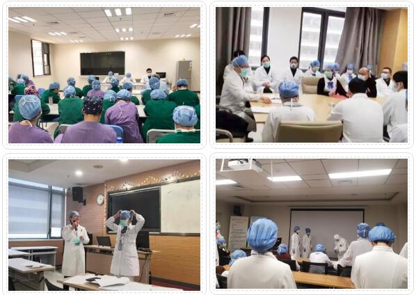 感控组开展全员培训,尤其是对高风险科室如发热门诊、急诊、ICU、 呼吸科、儿科门诊、老年科、产科等医务人员开展重点培训。在严格落实标准预防的基础上,强化接触传播、飞沫传播和空气传播的感染防控措施。强调正确选择和佩戴口罩、手卫生是感染防控的关键措施。并督促重点部门医务人员反复练习防护用品穿脱,确保做到医务人员院内“零感染”。