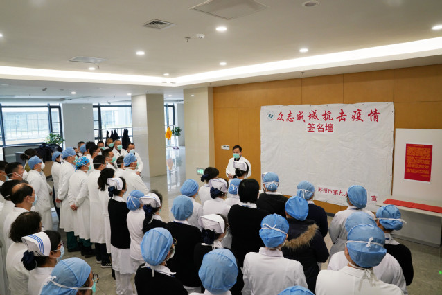 一声号召,九院人闻令而动,纷纷主动递交“请战书”,数百名志愿者通过报名,踊跃投身在防控疫情第一线,经过筛选,形成由感染科医务人员为主,并抽调其他临床和辅助科室骨干组成了医院疫情防控第一梯队进入发热门诊和隔离病区开展工作。他们表示将不负重托,不辱使命,听从指挥,坚决打赢这场疫情阻击战。两名“白衣战士”张婷婷、王雅萍毅然加入江苏第二批援鄂医疗队,驰援武汉。