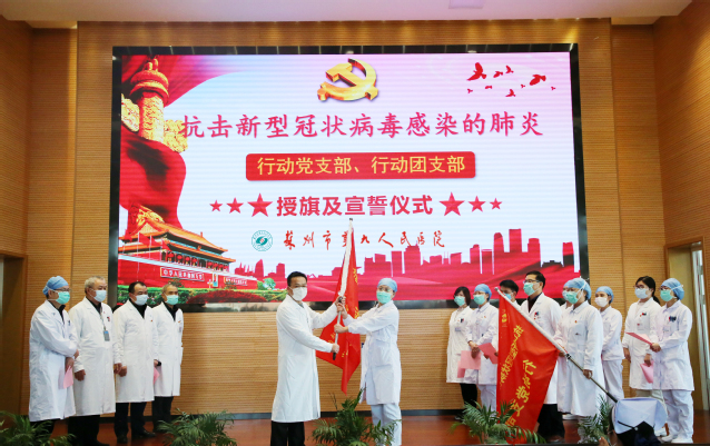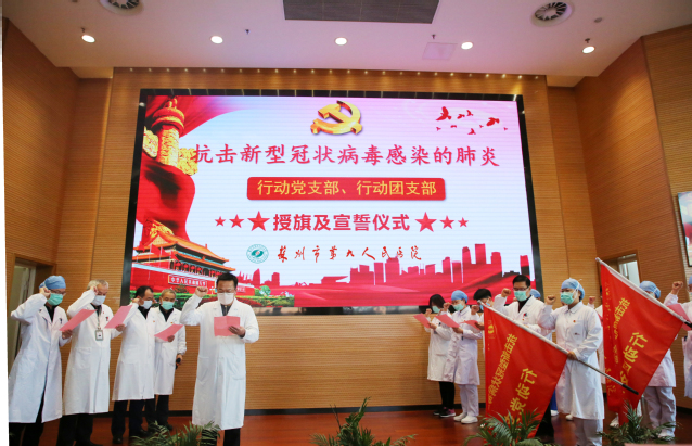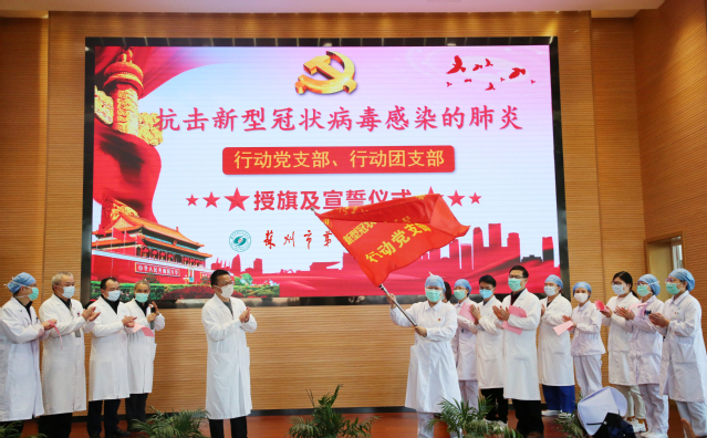 2月4日下午,在医院行政楼学术报告厅,医院党委对行动党支部与行动团支部进行授旗,支部代表进行表态发言。