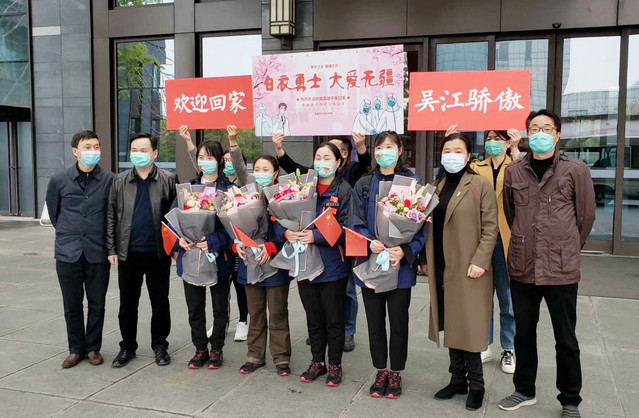 昨天,王雅萍、张婷婷等四名吴江首批援湖北医护人员也结束了集中休养,统一返回吴江。区卫健委领导和金沙娱乐城app 的院领导前往了集中休养点接勇士们回家。